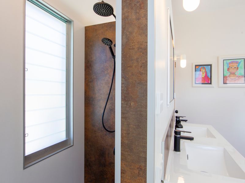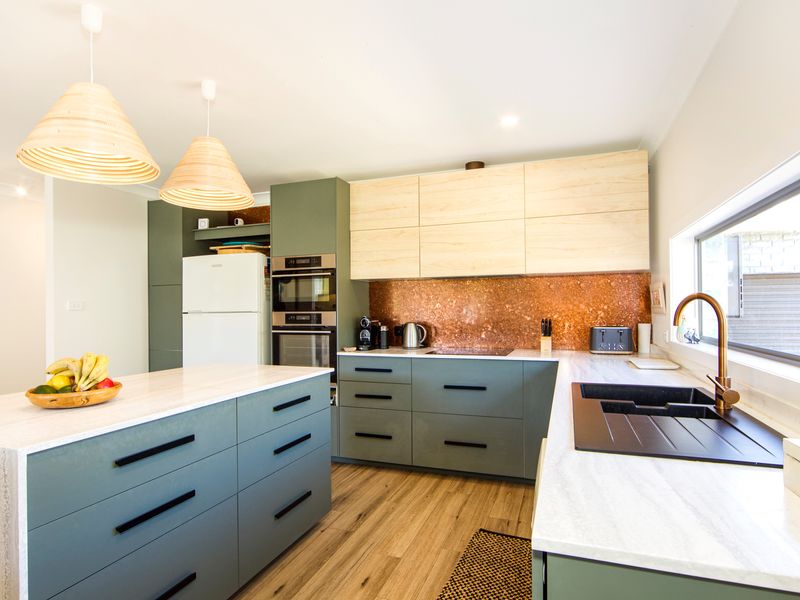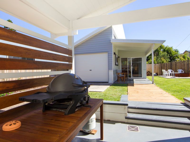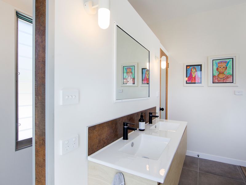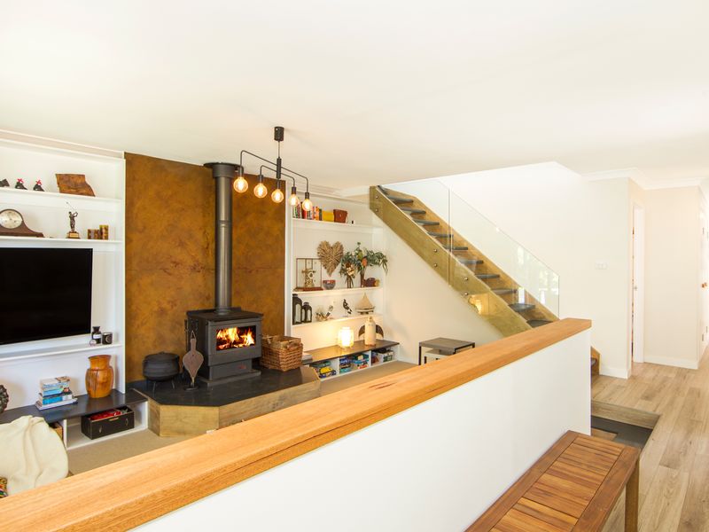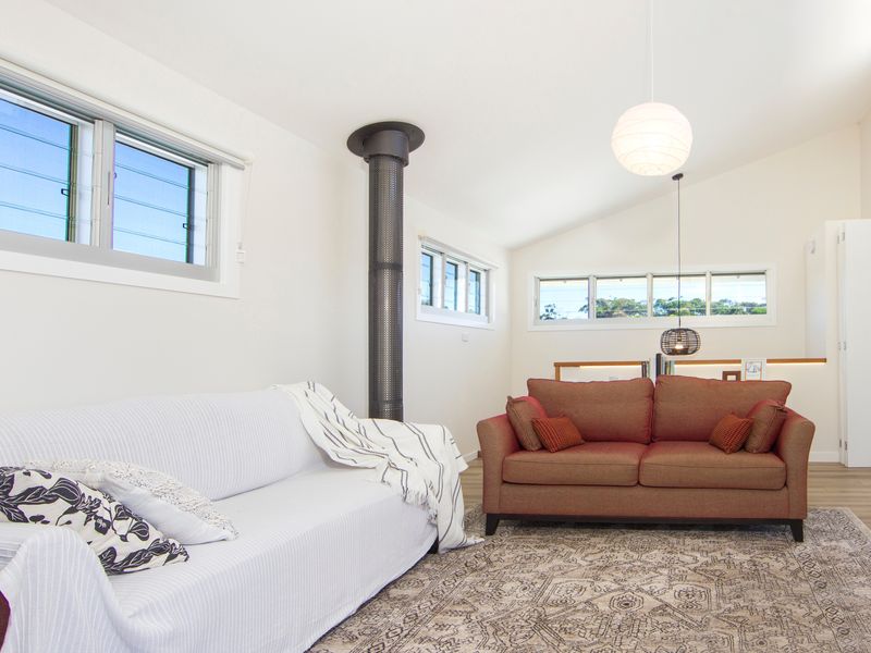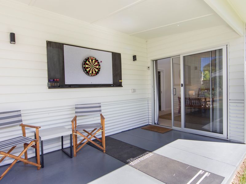 The main living room is comfortable and homely, with generous sofas to relax on and a cosy combustion fire for the cooler evenings. This central area includes a smart TV and Bluetooth speaker to play your favourite tunes. Enjoy some board games and a movie together. The designer kitchen has everything you will need to prepare holiday meals, with modern tapware and stunning bench tops. The wooden indoor dining table seats eight guests.