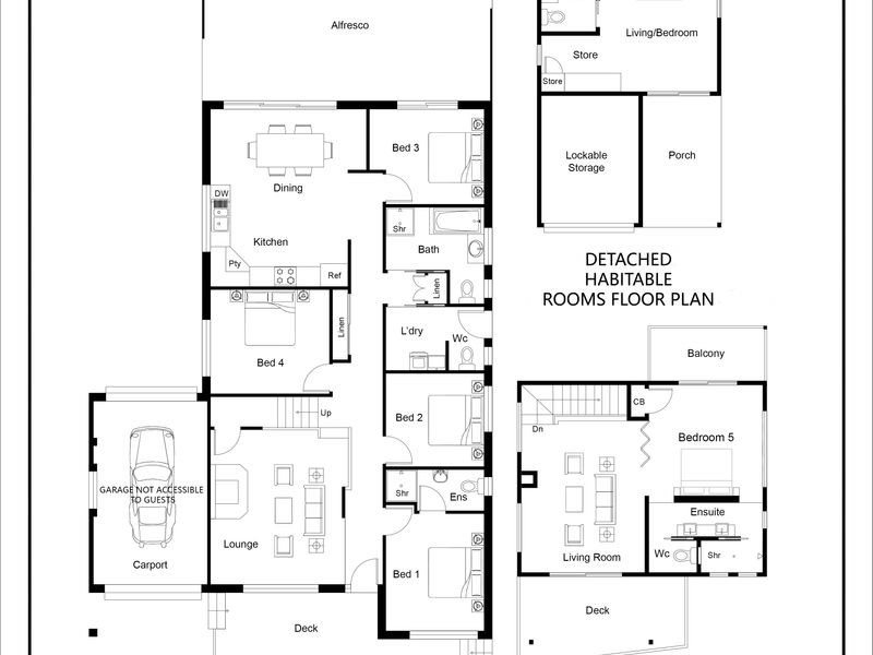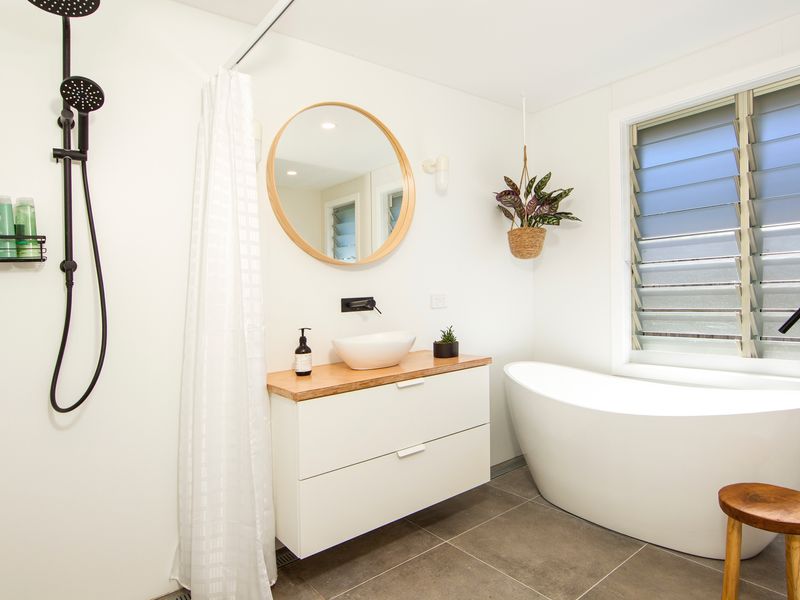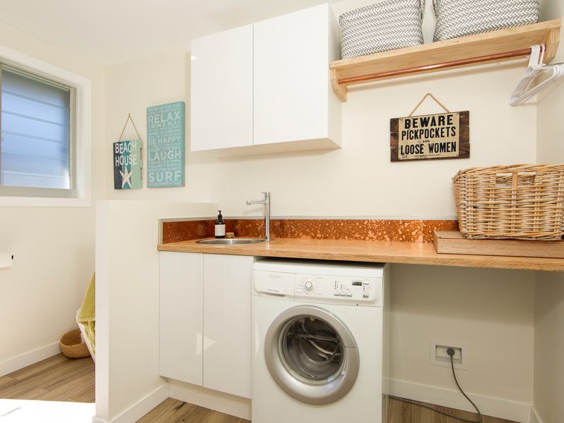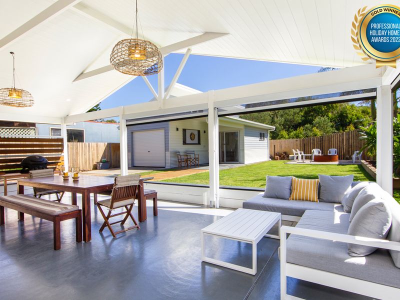 The main house has four bedrooms on the ground level and a parent retreat on the first floor. Spinnaker can accommodate multiple families in comfort. The ground level bedrooms include a bunk room the kids will adore, two well-appointed guest rooms and a Queen bedroom with private ensuite. The fifth ground floor bedroom is the garden studio with a private bathroom. The master retreat upstairs includes a deluxe ensuite and a lounge area with two sofas and a private deck boasting ocean views. All bedrooms have been thoughtfully furnished with wardrobes and a light and bright beachy style. A good night’s sleep awaits!