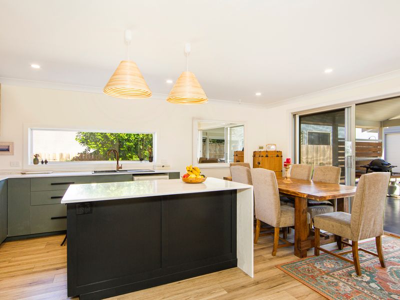 The combination of weatherboard, timber flooring and nautical decoration throughout offer a relaxed atmosphere, while still maintaining a stylish and modern interior design. With great coffee and cafes to visit between swimming, relaxing and connecting with family and friends, this Culburra beach holiday home is ready to enjoy.