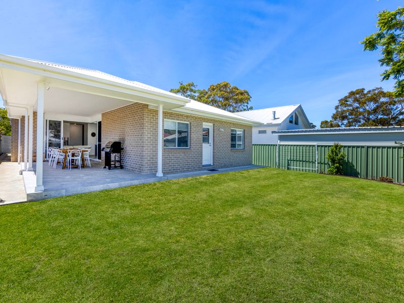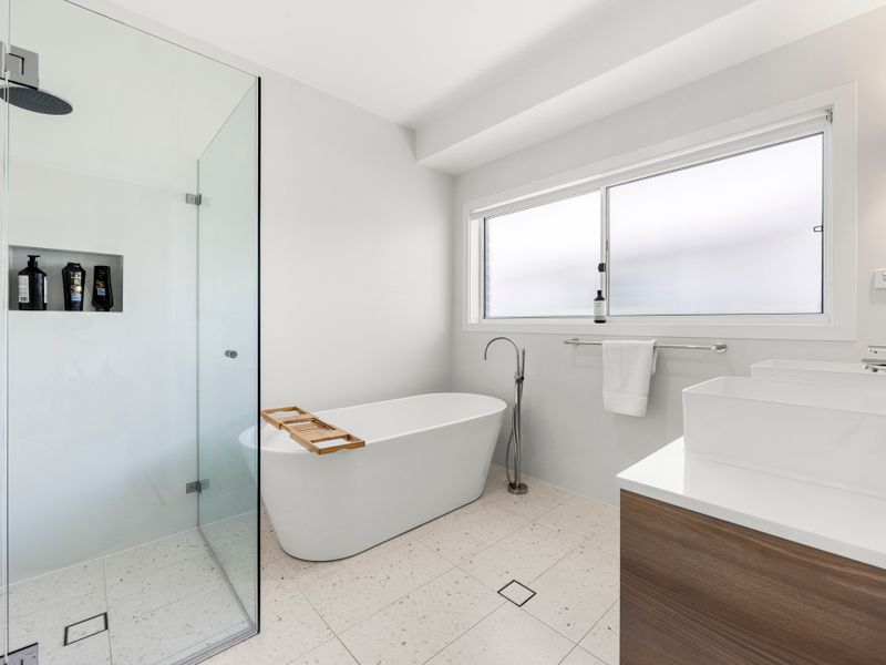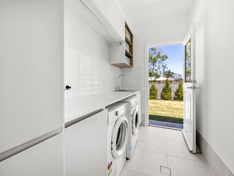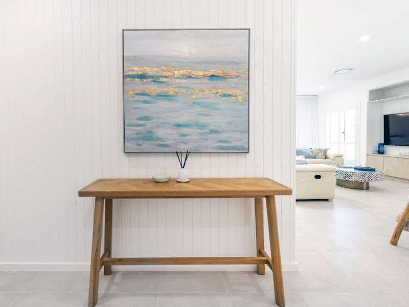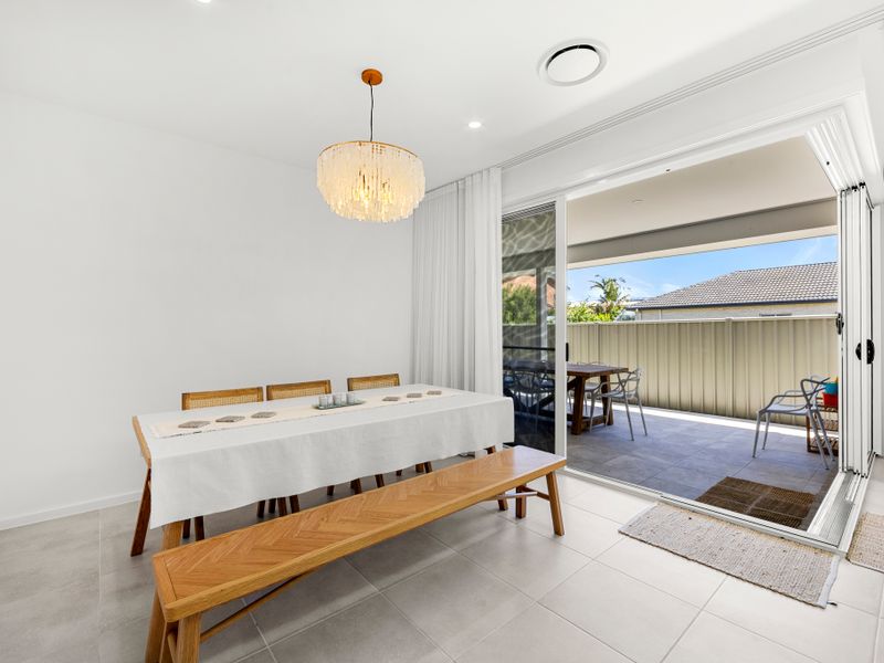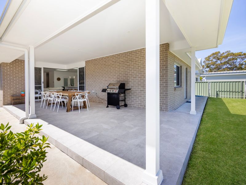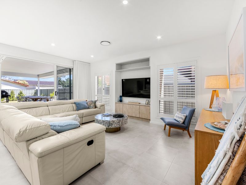 Escape the bustle and surrender to the rhythm of Jervis Bay at this bright, contemporary beach house — an effortless coastal base just a short 5-minute stroll to Callala Beach and Callala Bay (both part of Jervis Bay). Light, cool-tiled interiors flow from a generous designer kitchen (premium appliances, Smeg toaster & kettle, Nespresso, dishwasher, microwave, NutriBullet) into relaxed living areas and a separate media lounge that open to a covered alfresco dining and BBQ space — perfect for easy indoor–outdoor entertaining.