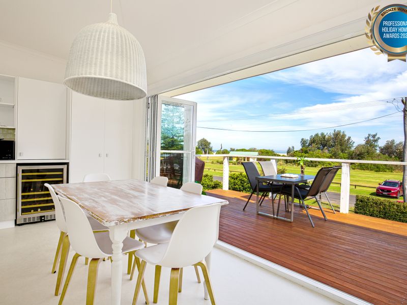 Drina J - 9th May 2022We had a great 3 nights at Arklow in Culburra Beach. The house is a perfect holiday house, every amenity is offered. The warm outdoor shower was great after a swim (good to wash off the dog as well). The downstairs bathroom made a lot of sense too except for the middle of the night if nature called! Huge yard for the dog although most is unfenced. The enclosed area was great to be able to safely leave the pooch at home at times. The huge front deck with views and the back deck were fabulous!