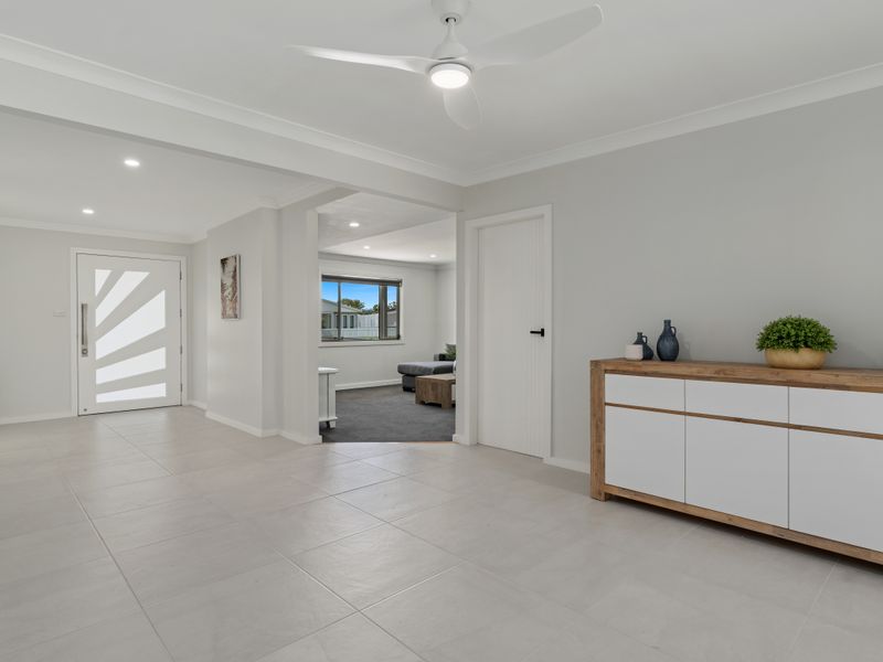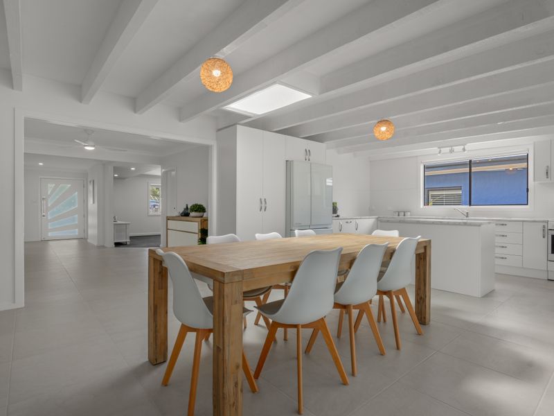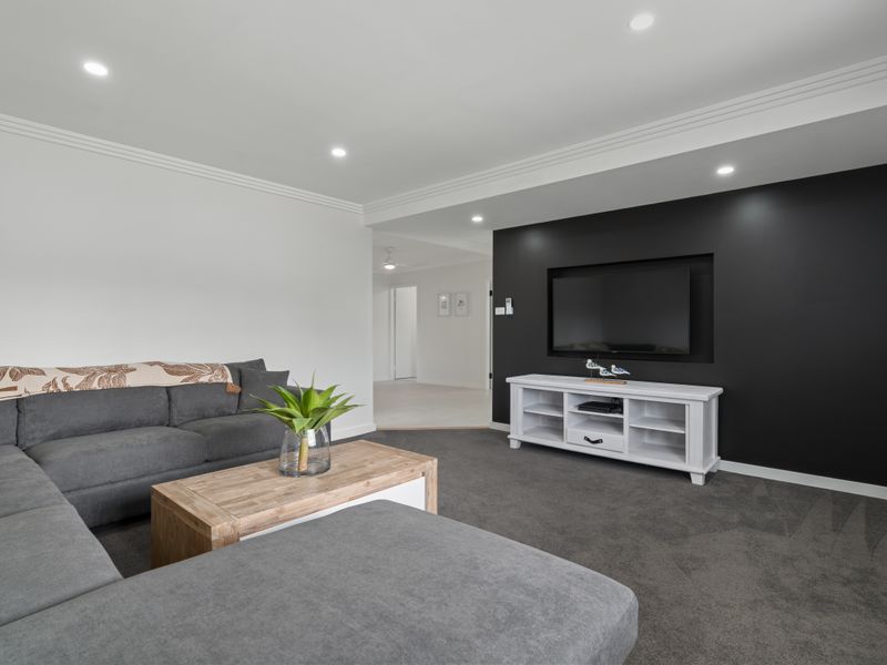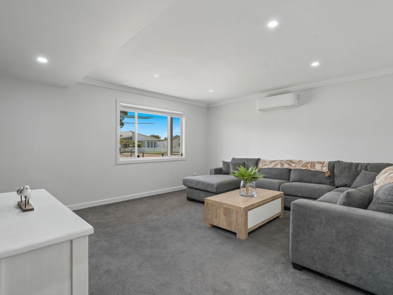 It comfortably sleeps up to 10 people across four bedrooms, so two families can holiday together while still having space to stretch out. All the bedrooms have fans, to keep you comfortable any time of year. With a large grassed and fully-fenced backyard for your four-legged friend, a spacious theatre room, a well-appointed kitchen and dining space for those who love to cook, and room for three cars and a boat, you can settle in for a relaxing stay from the moment you arrive.