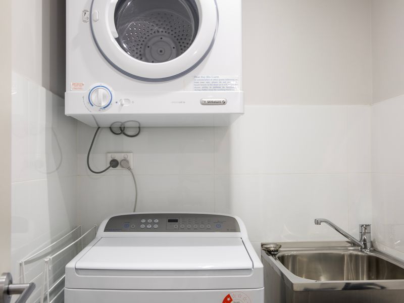 No need to pack heavy—the home comes with a washing machine, tumble dryer, drying rack, and ironing facilities. Both bedrooms are elegantly furnished, boasting luxury bed linen and ample clothing storage. For additional comfort, guests are provided with extra pillows and blankets. Upon waking fully rested, pack the towels and sunscreen; it's just a one-minute walk to the lagoon and beach where you will be enjoying lazy days in the sunshine.