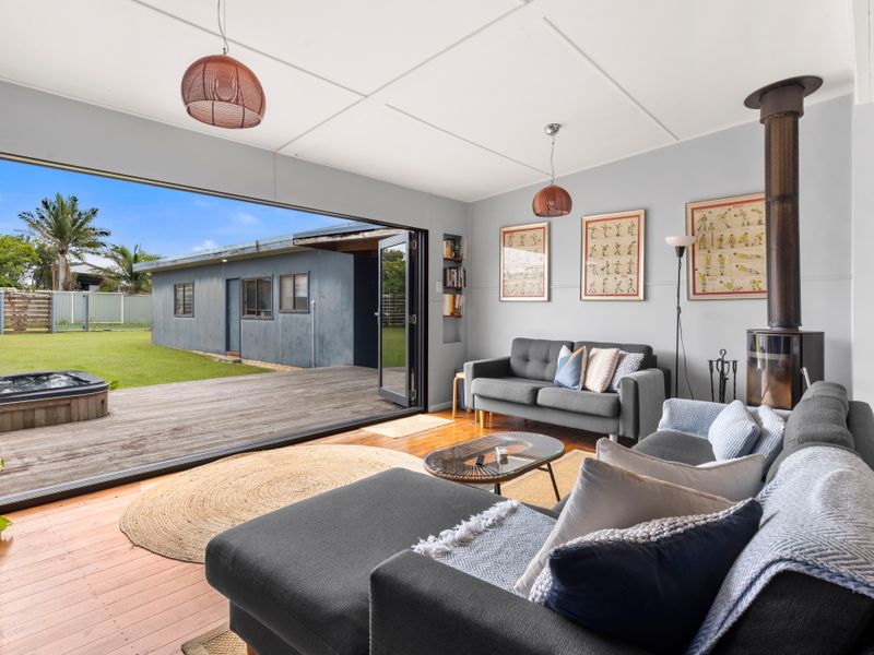 You’ll be staying at a classic beach shack with a wonderful, eclectic style that will take you back in time to the summers of your childhood. Brushed with a 1960’s vibe, Bluetongue is classic surf shack that captures the quintessential essence of beach life on the South Coast. Whilst relaxing on the back deck from the main living area you can simply relax enjoy the sea breeze whilst you’ll sip a glass of wine and listen to the waves crash in the distance. Winter visitors will love the combustion fire with complimentary firewood which will keep you warm and toasty on those crisp south coast nights.