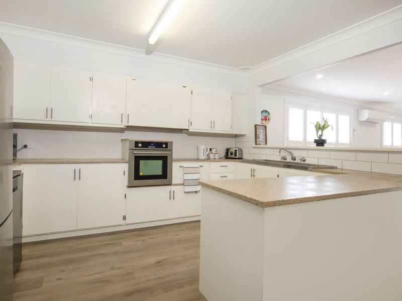 Stay inside comfortably in any kind of weather with the air conditioning and spread out across this comfortably spacious holiday home with beds for 14 people, a spacious yard for the pets, and something for everyone. Rest in comfort and enjoy some quality fun with the family by stretching out on the comfortable couches to watch Netflix or Foxtel in a living room bathed in natural light or take a board game to the outdoor lounge for a battle of wits. When the weather is good (and it usually is), round everyone up in the backyard and cook up a storm on the BBQ to enjoy with your favourite tunes blasting on the portable Bluetooth speaker for everyone to enjoy. Cooking will be a fun communal activity in the expansive fully furnished kitchen adjoining the dining room and living room, which opens onto the deck thanks to floor-to-ceiling sliding glass doors, so no one will ever feel closed off from the conversation!