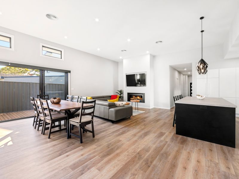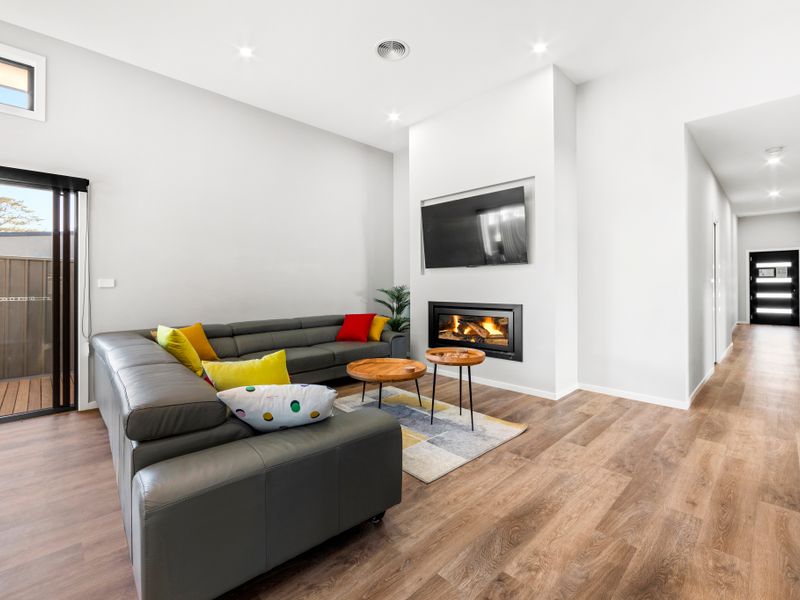 The well-appointed kitchen is a practical host’s dream: a generous layout with a butler’s pantry and plenty of bench space makes meal prep straightforward whether you’re rustling up snacks or feeding a crowd. The main living area centres on a cosy gas fireplace that creates a warm, comfortable atmosphere for cooler nights, and there’s flexible seating across the lounge and dining zones so groups can spread out without losing the sense of togetherness.