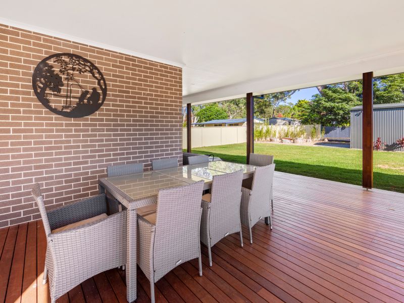 Escape to relaxed beachside living in Jervis Bay at this bright, airy home — just a 4-minute stroll to Callala Beach. Light, open-plan living flows into a large undercover entertainment area with BBQ, creating an easy indoor–outdoor layout that suits slow breakfasts, long lunches and effortless evenings around the barbie.