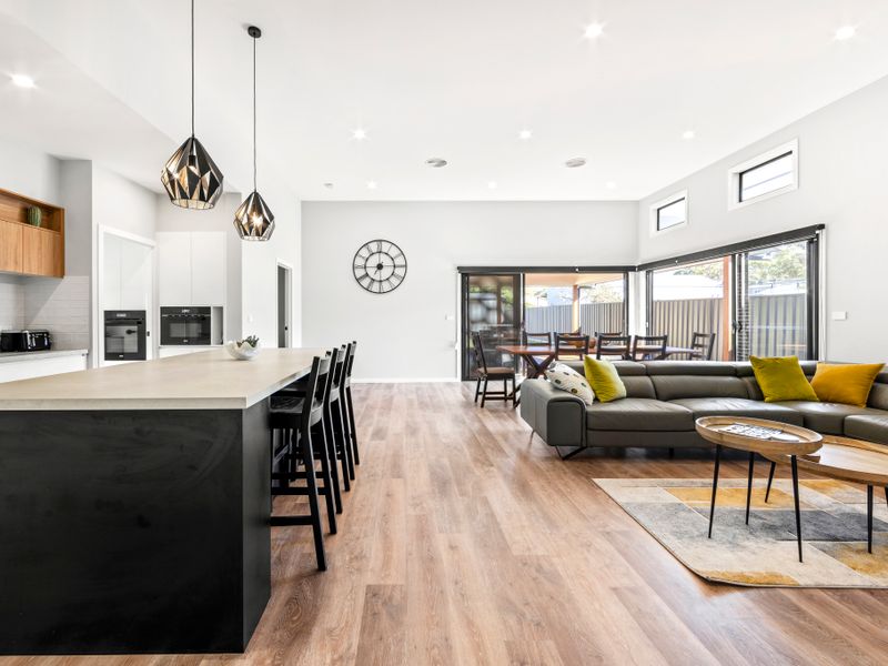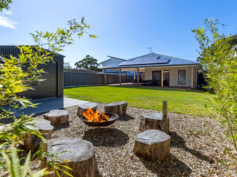 Bedrooms are arranged for convenience and privacy, with built-in robes and ceiling fans throughout. Two bathrooms (including a handy shower + toilet in the laundry area) reduce queues at busy times, and the private, fully fenced yard gives easy access from the house for sunny afternoons and fresh-air play. After the beach, rinse off under the hot/cold outdoor shower before stepping inside.