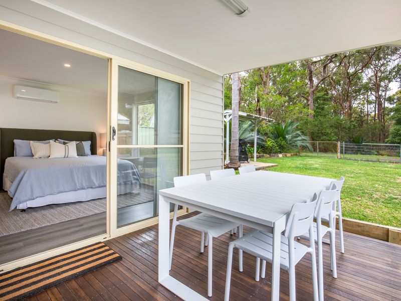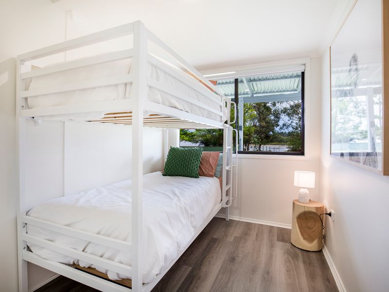 Situated directly across from beautiful Currambene Creek, with a short walk to the world-famous pure white sands of Jervis Bay. There you can float under blue skies in water as crystal clear as a mountain stream and your four-legged friend can run for kilometres and the kids can play in the water without care whilst the adults relax.
