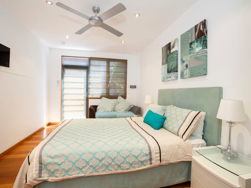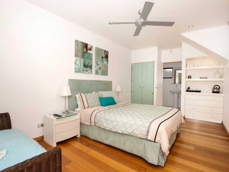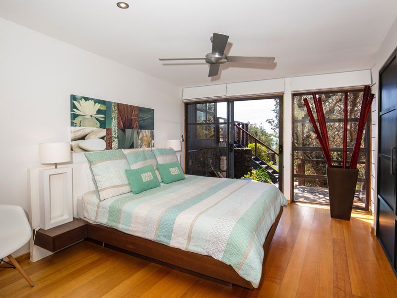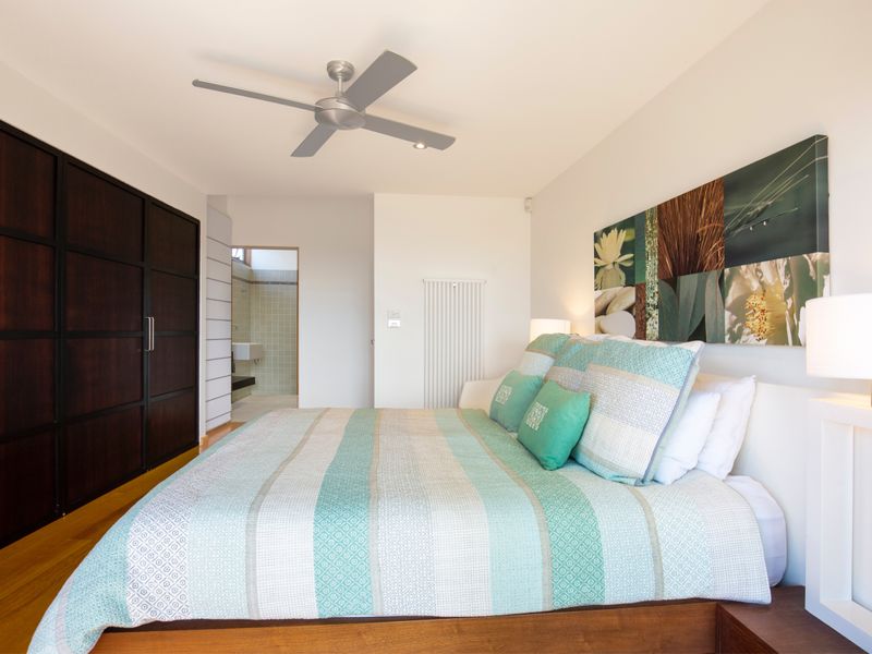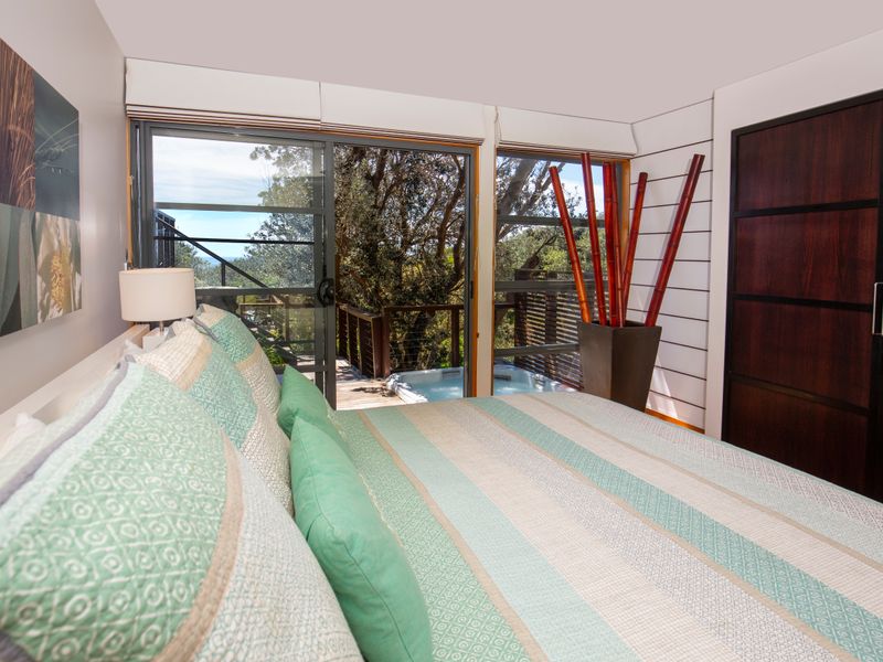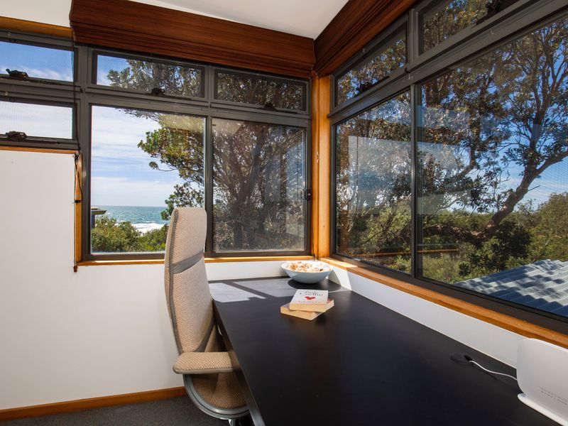On a chillier day, enjoy the heating and read or write in the upstairs study with marvellous ocean and bush views. The video door intercom will ensure that no one will stay locked out, and a self-contained apartment adjoining the house will give separate couples the extra privacy they need.