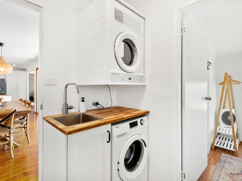 A dedicated car parking space, air conditioning, heaters, fans, and a fully equipped laundry with a washing machine and tumble dryer tick off all the boxes on your list of conveniences.