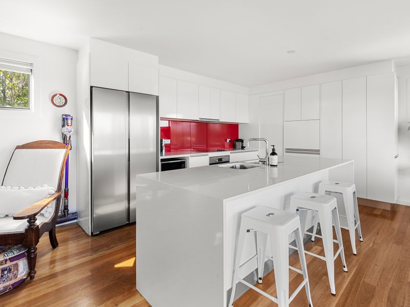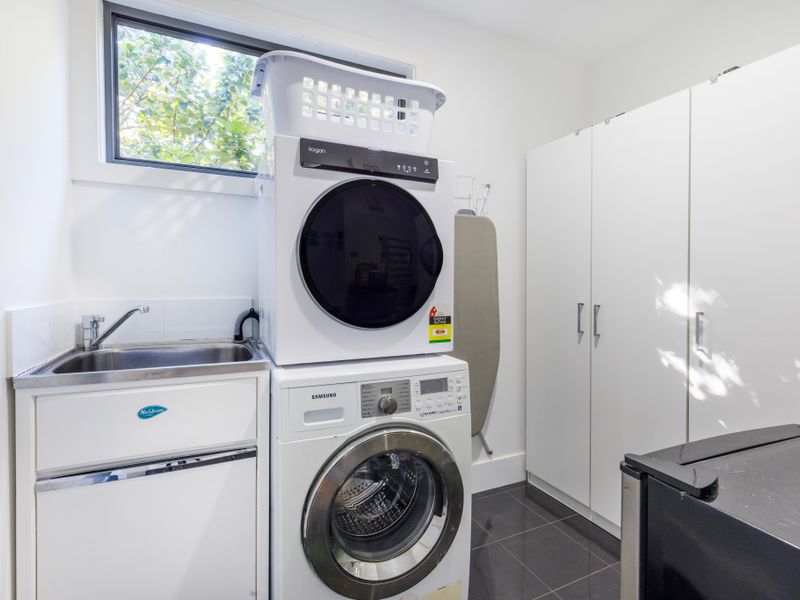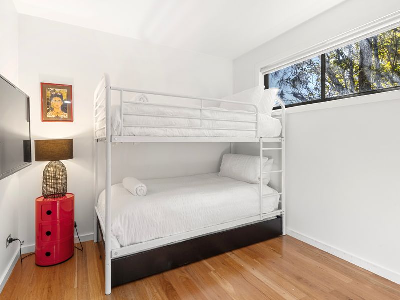 Start your mornings on the upstairs balcony, relaxing with a coffee while you take in the lake views and gentle coastal breeze. There’s even a dedicated desk if you need to sneak in some work—or simply jot down your holiday memories. The well-equipped kitchen makes meal prep a breeze, and outdoor dining options abound with a BBQ on the balcony and a firepit area in the backyard.