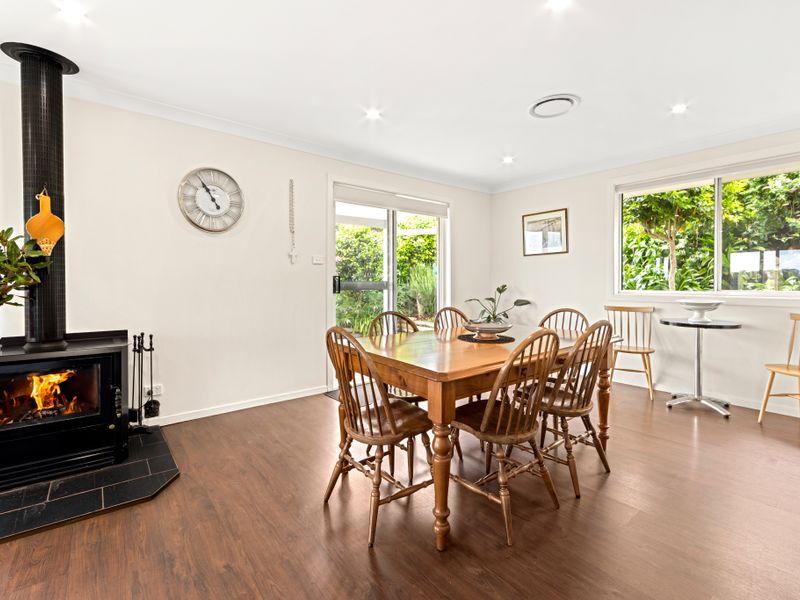 Step outside and you will find a spacious garden, perfect for letting your pets enjoy an open space. The property hosts a handy barbeque with utensils, all set to grill to your heart's delight while enjoying the scenic views of Meroo Meadow.