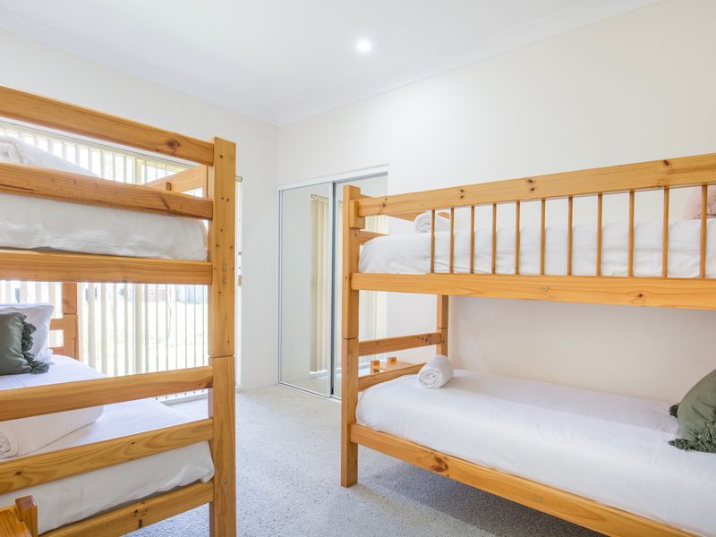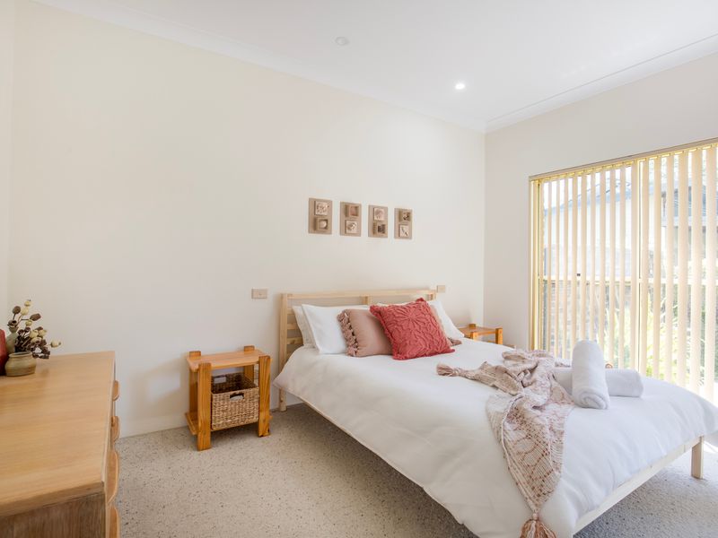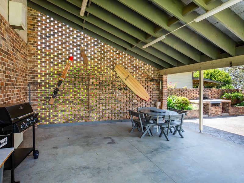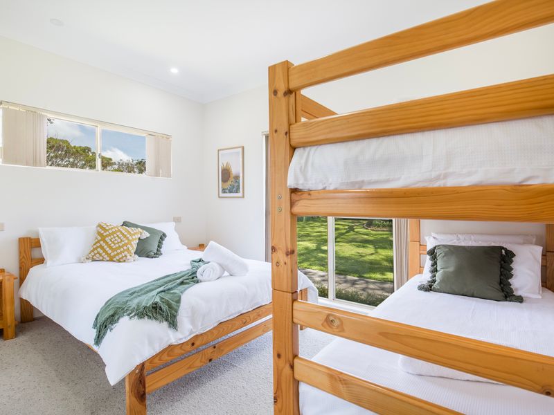 Outside, the ample verandah steps out onto a spacious shaded back-yard ideal for a game of cricket, volleyball or kicking the ball with the kids. Meet the local king parrots or explore the lakes birdlife by taking out one of the house’s paddle boards. Washing off sandy feet post-beach stroll? The handheld shower hose in the BBQ area has got you covered, while the fire place offers an opportunity for cozy gatherings at night, toasting marshmallows and sharing stories from the day's adventures.