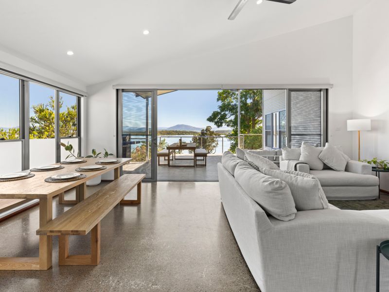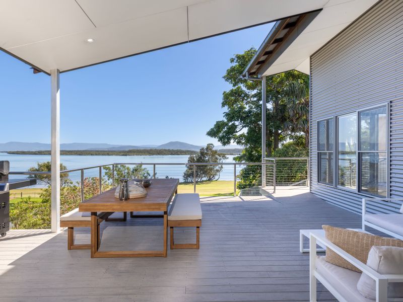 This prime waterfront property offers majestic views, a commodious living space, ample outdoor entertainment options, and all the essential amenities for an unforgettable getaway.