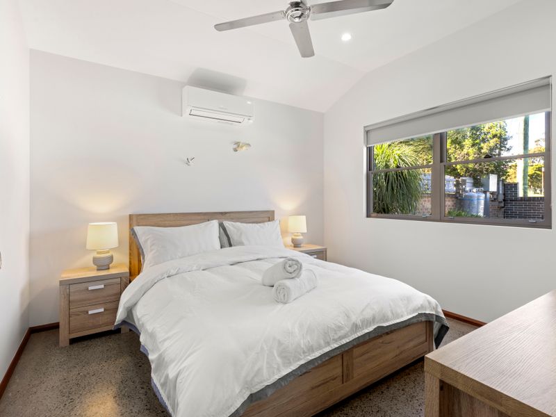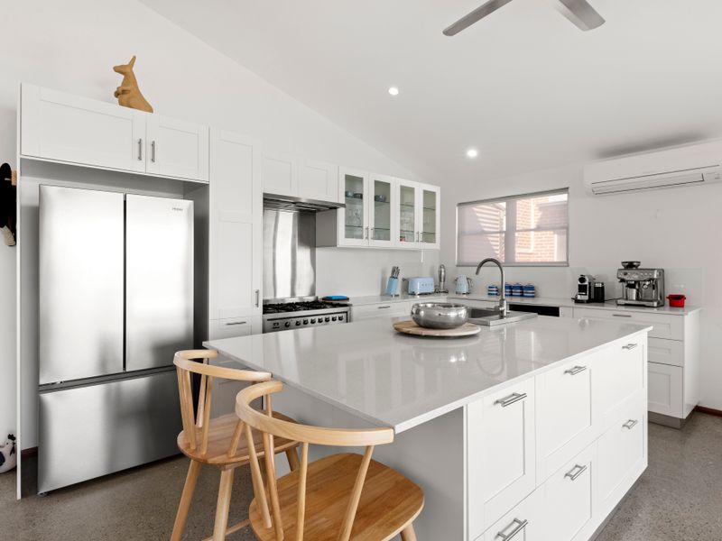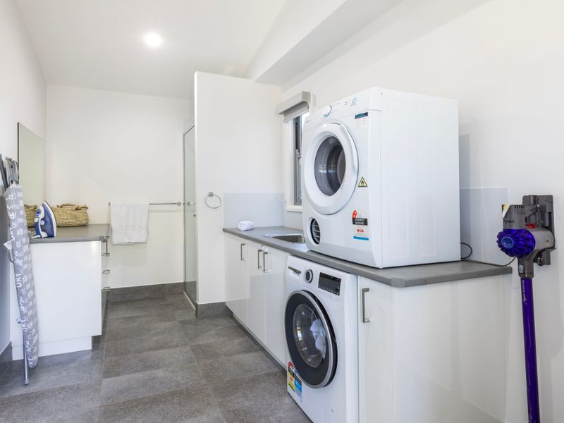 For your convenience, this holiday rental also features comprehensive on-site laundry facilities, free Wi-Fi, child-friendly dinnerware, and dedicated parking for two vehicles. In case you’re bringing infant guests, a high chair and porta cot are available, ensuring you pack light.
