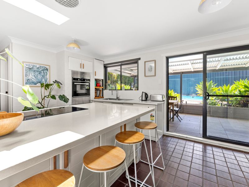 Step outside onto the expansive deck and bask in the coastal air while preparing dinner on the barbecue. Overlooking a sparkling pool, this outdoor area doubles as an ideal spot for alfresco dining or relaxing with a book while the little ones play in the child-friendly garden.