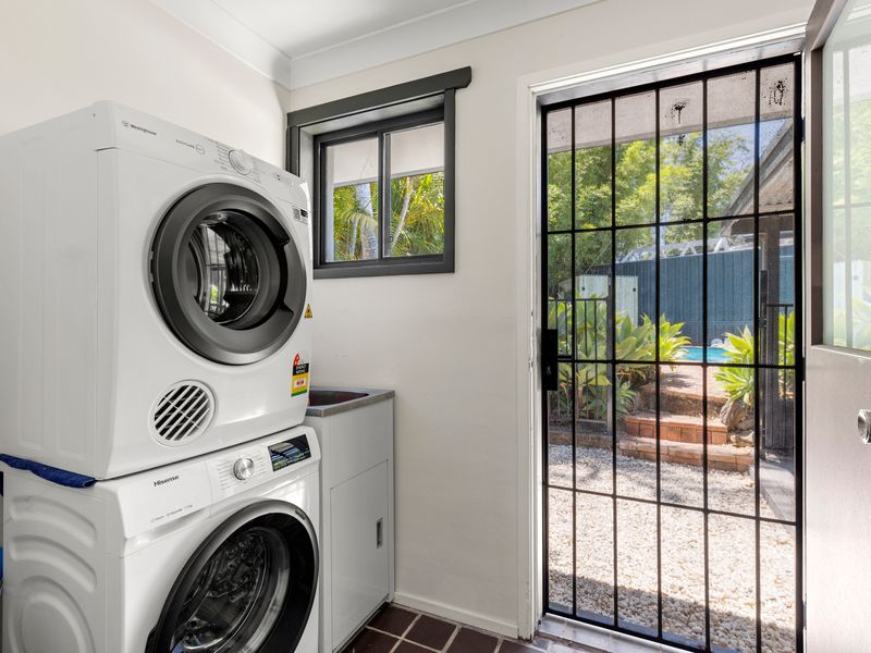 Our home's hub is the large open-plan living and dining area, encompassing a well-equipped kitchen with views to the outside entertaining area and pool. Coffee lovers will appreciate the coffee machine, all set to brew your morning cuppa, while home cooks can make use of the pantry filled with essentials like tea, oil, salt, pepper, and sauces.