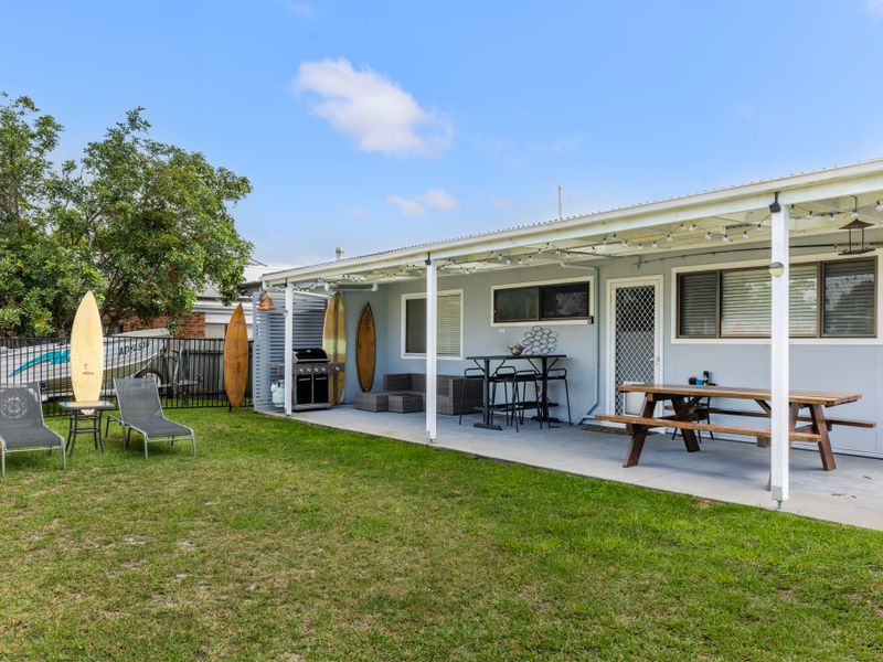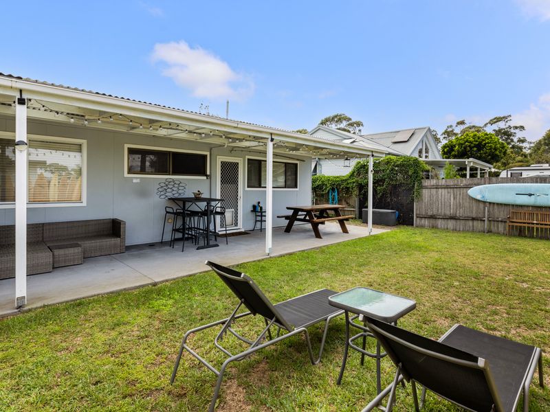 After swimming in the sparkling waves, rinse off in the outdoor shower and decide how to spend the rest of your day in one of the most beautiful places in the country. Stay inside comfortably in any kind of weather with the air conditioning and relax in front of the TV with Netflix at your fingertips. For a break from technology, grab a board game to battle it out on the dining table, or take a book and relax on the outdoor lounge. When mealtimes come around, cook up a storm on the BBQ to enjoy on the outdoor dining table listening to your favourite tunes from the portable speaker, with your four-legged friend running around the fully fenced Shared yard. If the parents need a break from the kids, take a bottle of bubbly around to the front of the house and sit in the shade in front of the well-maintained colourful garden.