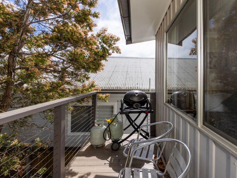 The home comfortably sleeps six adults across three bedrooms. There’s a bathroom downstairs with a separate bath and shower plus an additional toilet upstairs. A fully fenced, dog-friendly yard and outdoor seating areas make Sandpiper a relaxed choice for visitors who value space, easy indoor–outdoor flow and proximity to the bay.