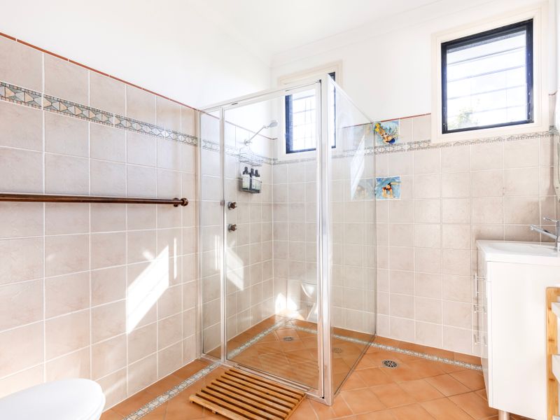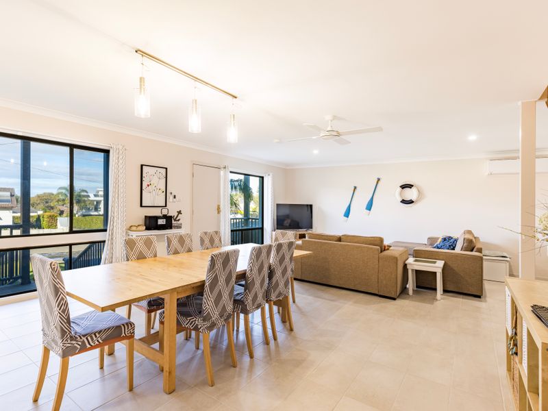 Return to the comfort of your abode to rinse off and enjoy lunch cooked and eaten in the air conditioning, or out on the BBQ with the sea breeze and sunshine and sounds of birdlife. Or recline in front of the television for your fix of Netflix with two seperate living rooms. The backyard has enough space for a game of catch with your four-legged friends, or you can have a quiet read on the deck chairs with views of the ocean.