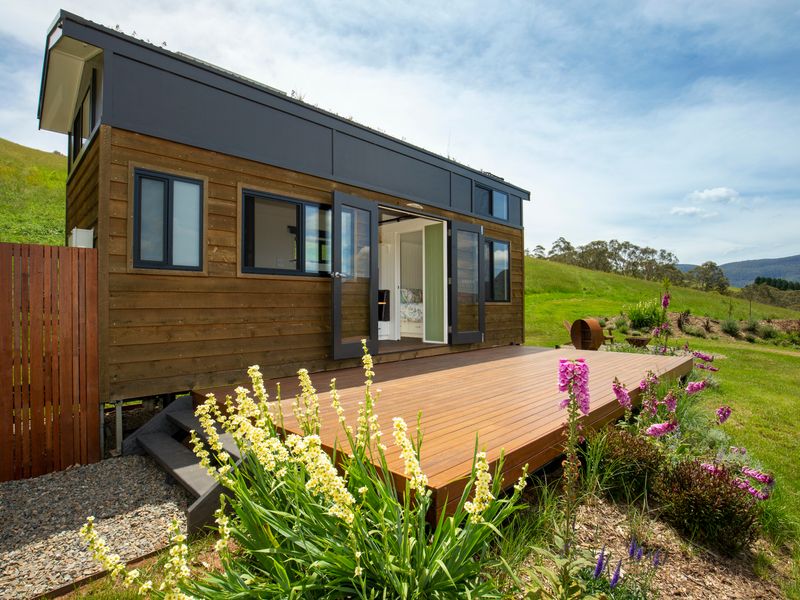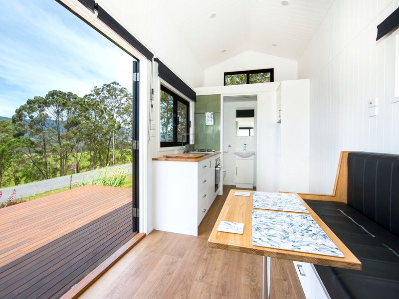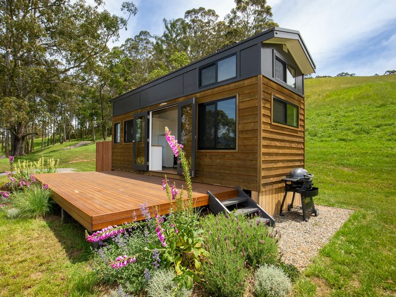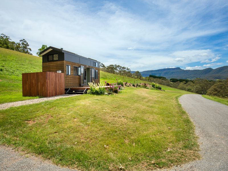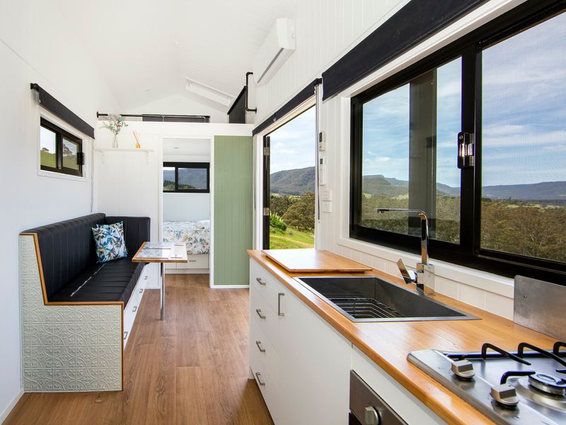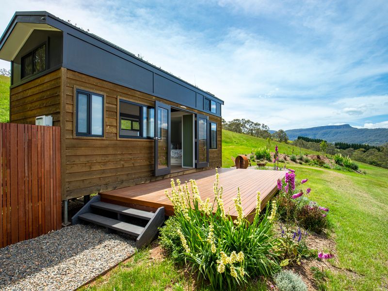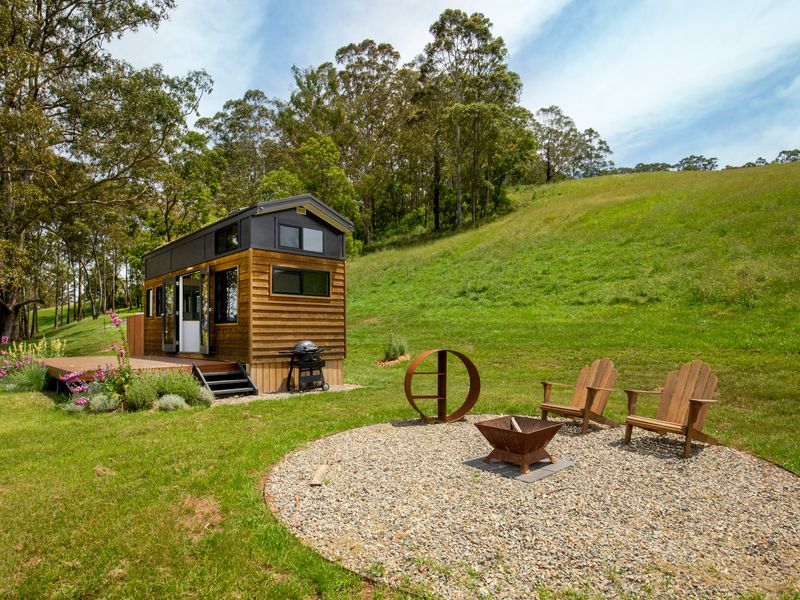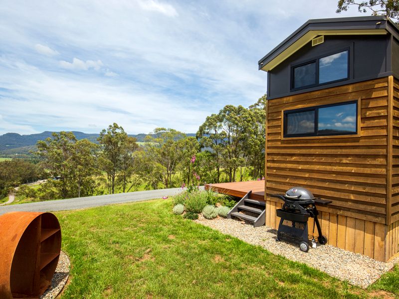 Perched atop a hill in Kangaroo Valley, Stella has everything you could want or need for a comfortable holiday stay, packaged into a cozy tiny house with fire pit. Wake up in the queen bed in the mornings to beautiful blue skies out every window and make yourself a cuppa to enjoy out on the deck with birds calling to each other in the trees all around you.