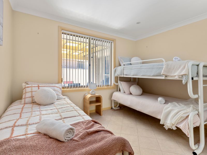 Outdoors, a fully fenced garden offers an oasis for relaxation and child-friendly play, while up to three pets can join the vacation fun. After a day exploring the wonders of Jervis Bay, unwind with a family movie night courtesy of the Smart TV or challenge each other to a board game tournament.