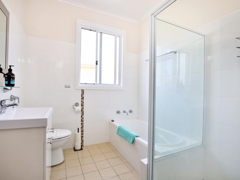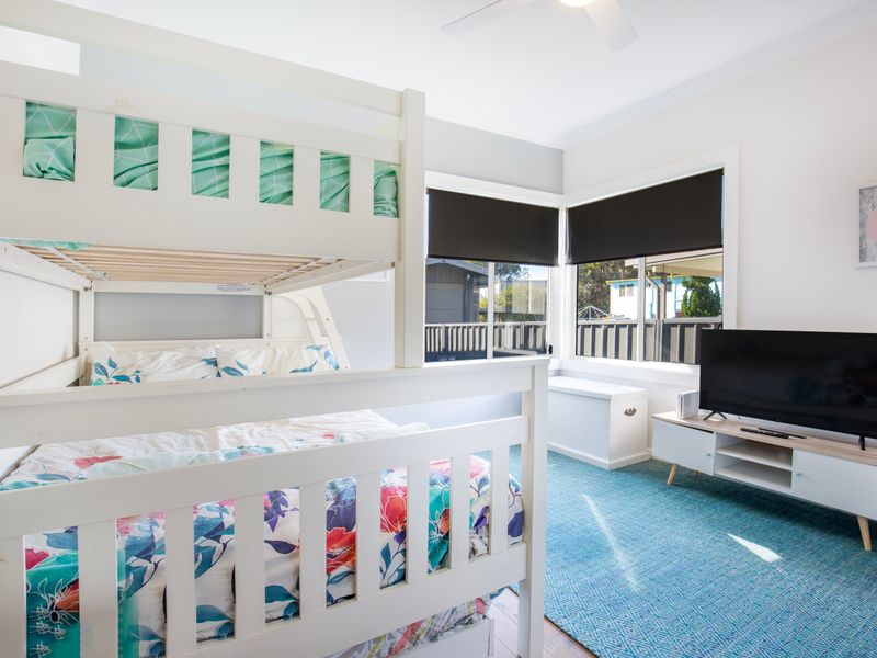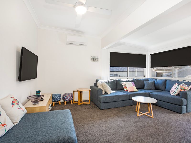 With air conditioning and outdoor seating for the summer, and heaters and a bath for the winter holidays, this house is equipped for all seasons. For those rainy days, the garage has been converted into a games room, containing a dartboard, table tennis, foosball, lounge, and full-sized fridge. It’s the perfect undercover entertainment for adults and kids, and a welcome respite from the heat on sunny days. Your furry friends can be safely ensconced within the fully fenced garden too. Whether inside or outside, there’s plenty of room for everyone, although you’ll have to draw straws for the room with a queen bed and its own TV.