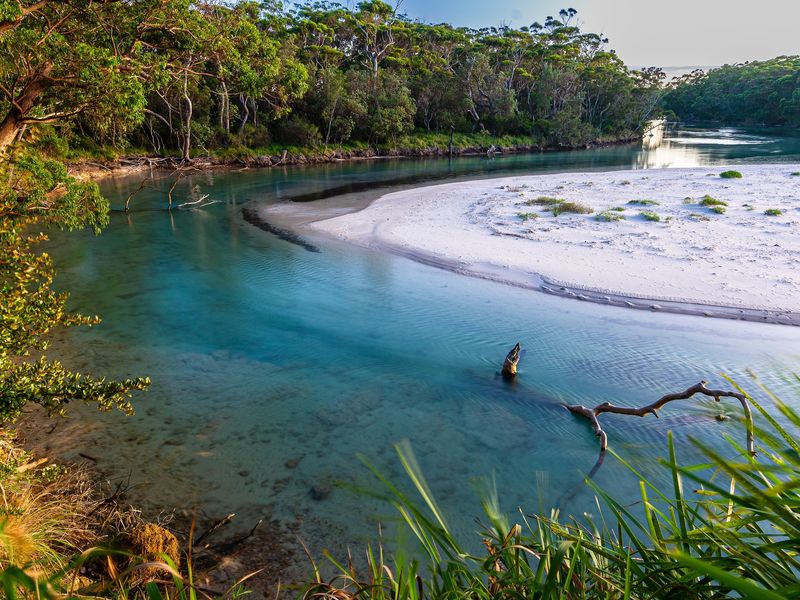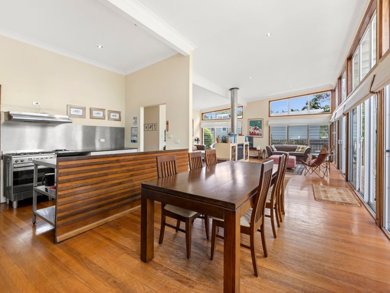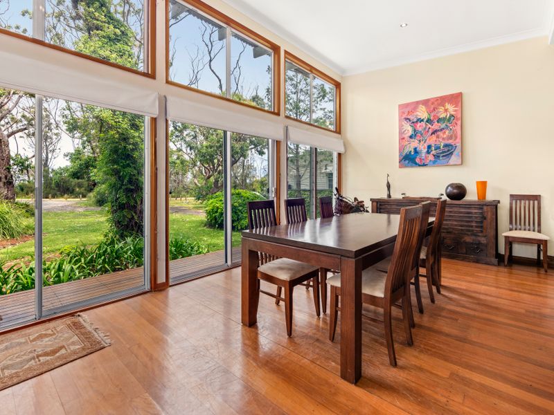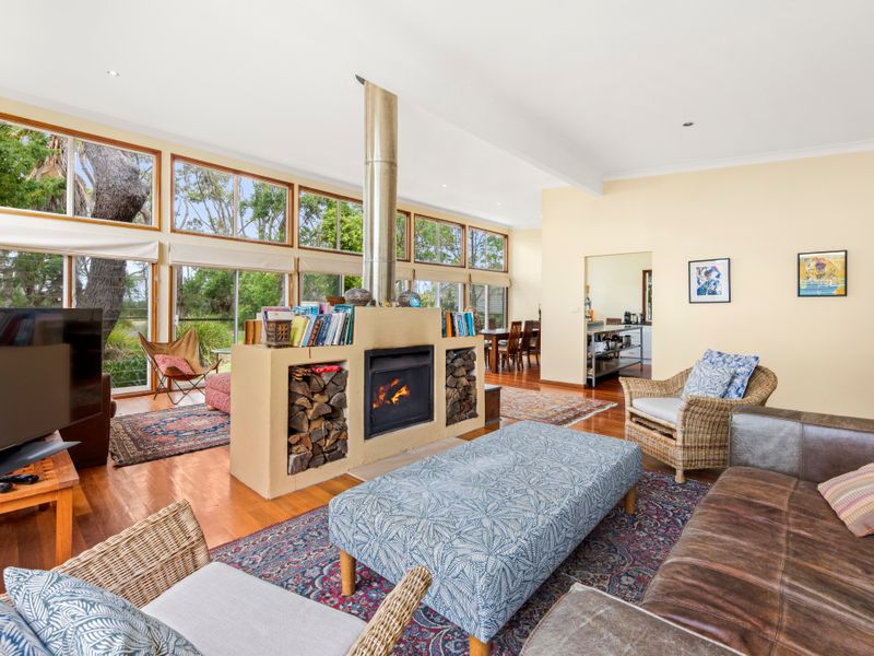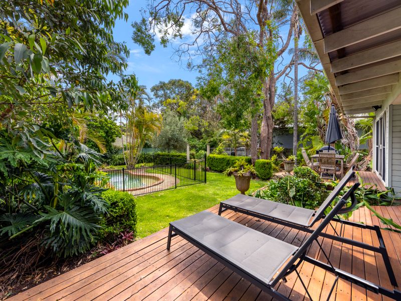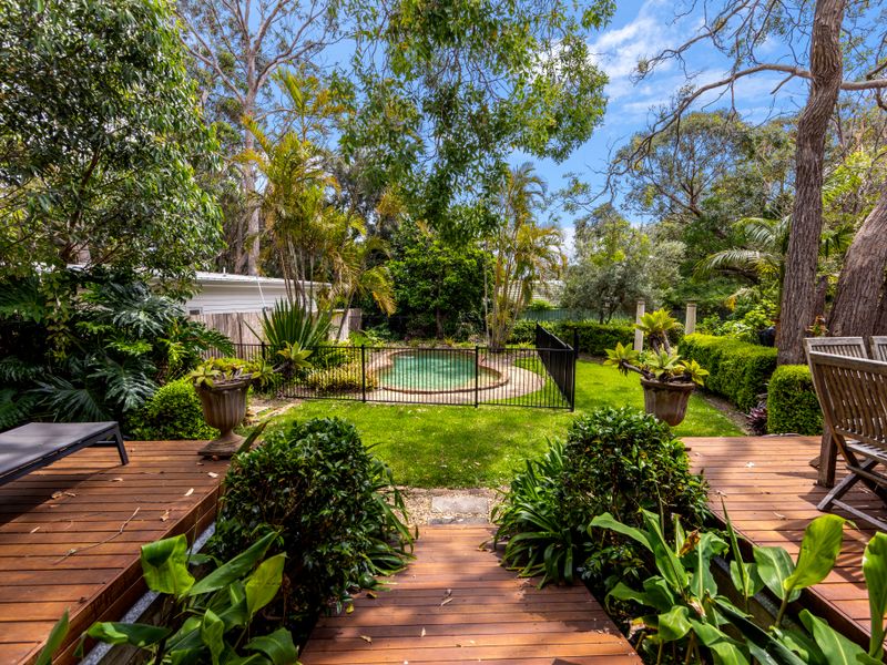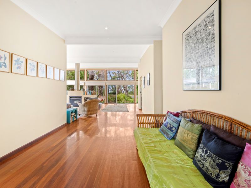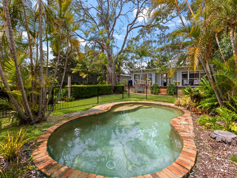 Escape to waterfront calm in beautiful Jervis Bay at this light-filled retreat — a short five-minute walk to the beach or the nearby boating facilities. Polished floors and floor-to-ceiling windows flood the open plan living with natural light; a striking double-sided fireplace creates a cosy focal point for cooler nights, while the pool and lush private backyard deliver sunny summer days of BBQs and relaxing by the water.