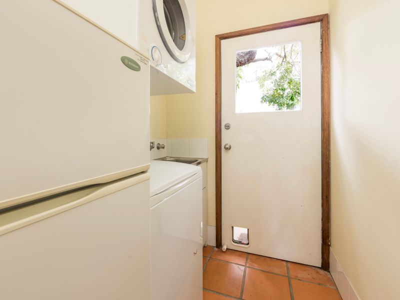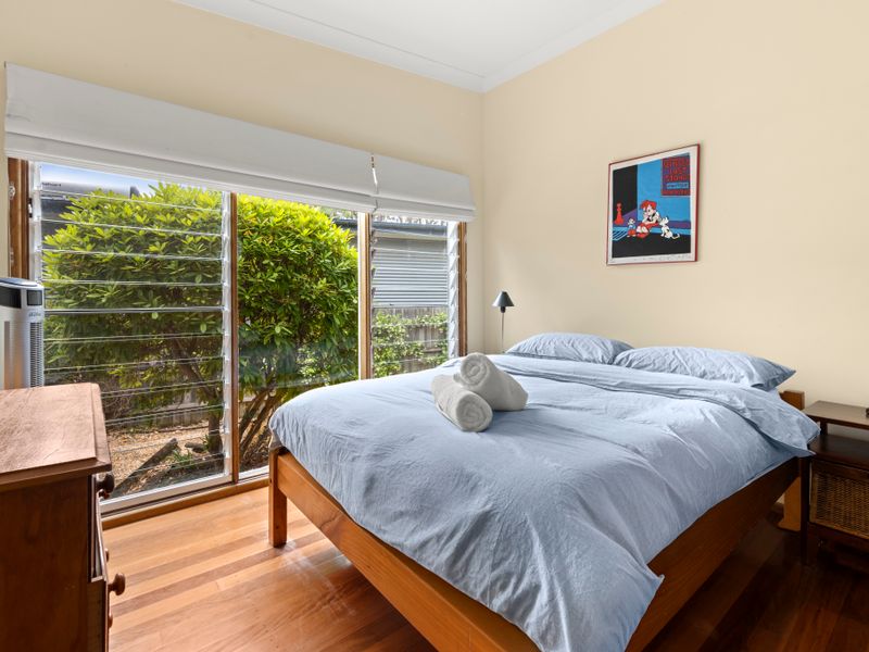 The modern stainless-steel kitchen with gas cooktop and dishwasher flows into dining and lounging zones that easily host groups; indoors dining seats six and sliding doors open to a rear deck with BBQ so meals feel effortlessly indoor–outdoor. The home sleeps up to six guests across two bedrooms (one double bedroom opens to the poolside deck; the second bedroom includes a double and a bunk), and a two-way bathroom with bathtub plus a separate WC help keep morning routines moving. A laundry with washer and dryer and off-street parking for two cars add practical convenience. Free Wi-Fi, Foxtel and Netflix are provided for evening downtime.
