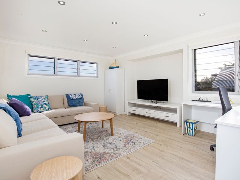 Return to rinse off the sand in the heated outdoor shower and enjoy lunch cooked either in the modern kitchen or on the BBQ and eaten in air conditioned comfort or on the covered deck to enjoy the sea breeze. The floor-to-ceiling glass doors slide open allowing you to benefit from the calming sound of the sea wherever you happen to be in the house. During downtime battle over a board game at the table or play an outdoor game in the, fully-fenced backyard. You can steal some privacy with a cold drink and a book on the front balcony, and the two living spaces allows the adults to enjoy a few relaxed drinks and the view while the kids watch Netflix in the space dedicated to TV entertainment.