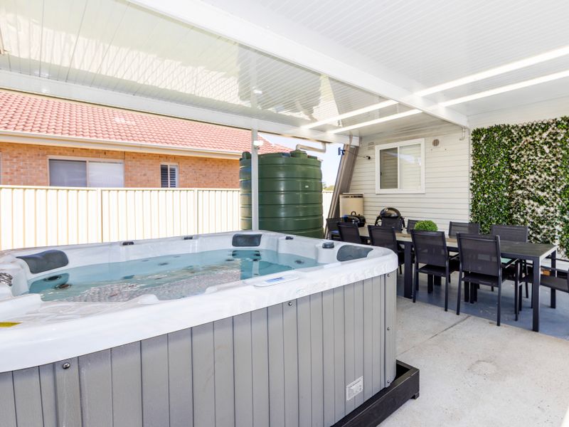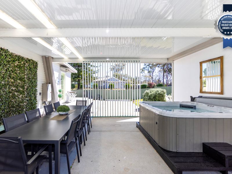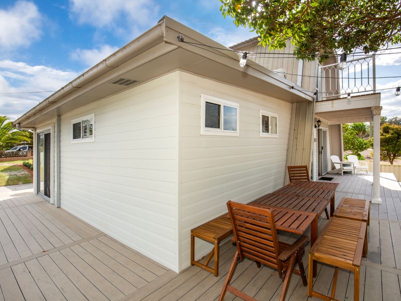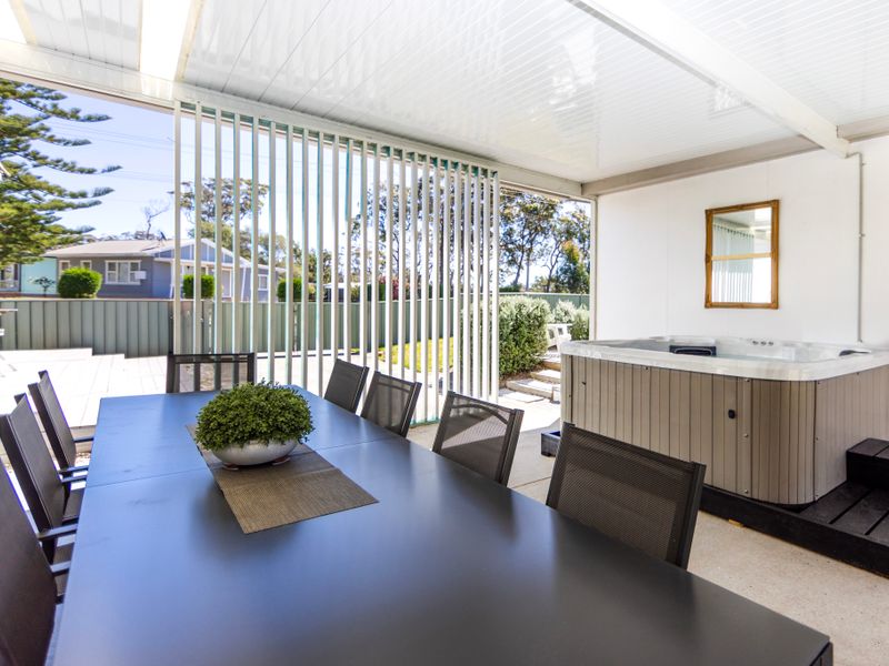 Start your day with a brew from the local coffee van across the road and wake up peacefully on the deck chairs with a street view or the under the entertainment area, and once everyone is awake, grab the towels and head down to Callala Beach for a swim and a sun bake on the stunning sands of Jervis Bay. Come back when you get hungry and rinse off in the outdoor shower to enjoy meals on the outdoor dining tables under the shade of the tree in the front yard or under the entertainment area with lunch prepared in the kitchen and cooked on the BBQ outside.