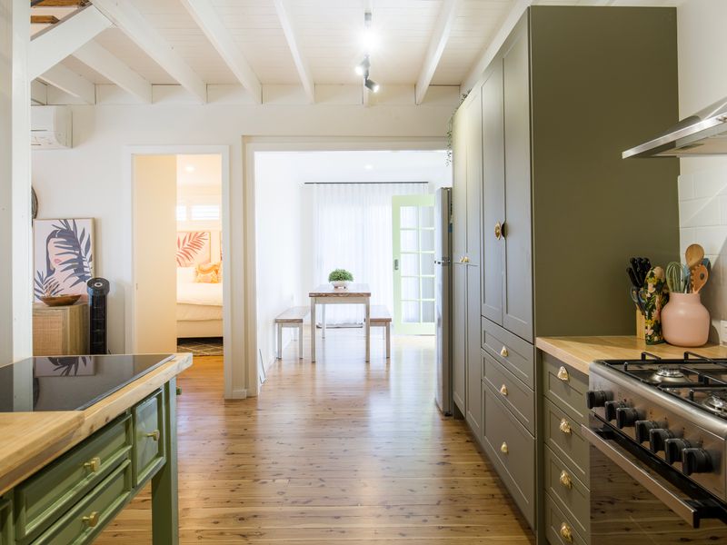 Wavesong on Watts is a recently renovated cottage with quirky architecture, with a studio separate from the main building containing a king bed, kitchenette, living room & bathroom. A smaller family in the group can enjoy a bit of privacy, or the noisiest kids can be given their own space to hang out apart from the adults.