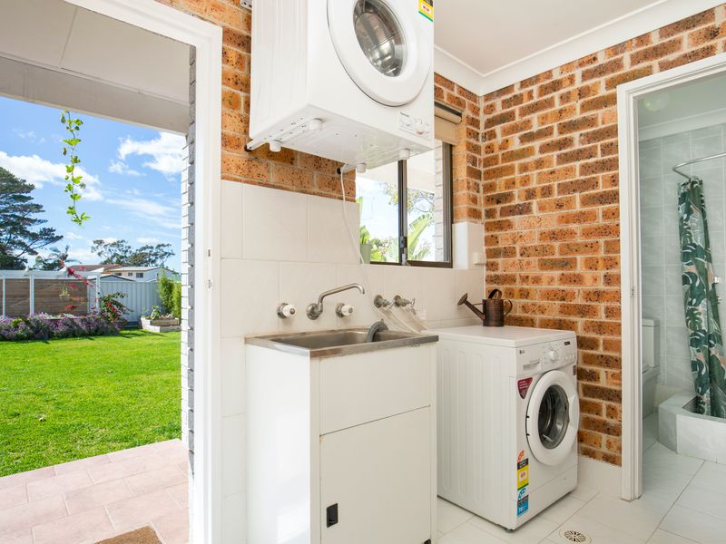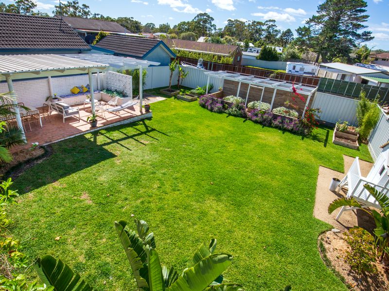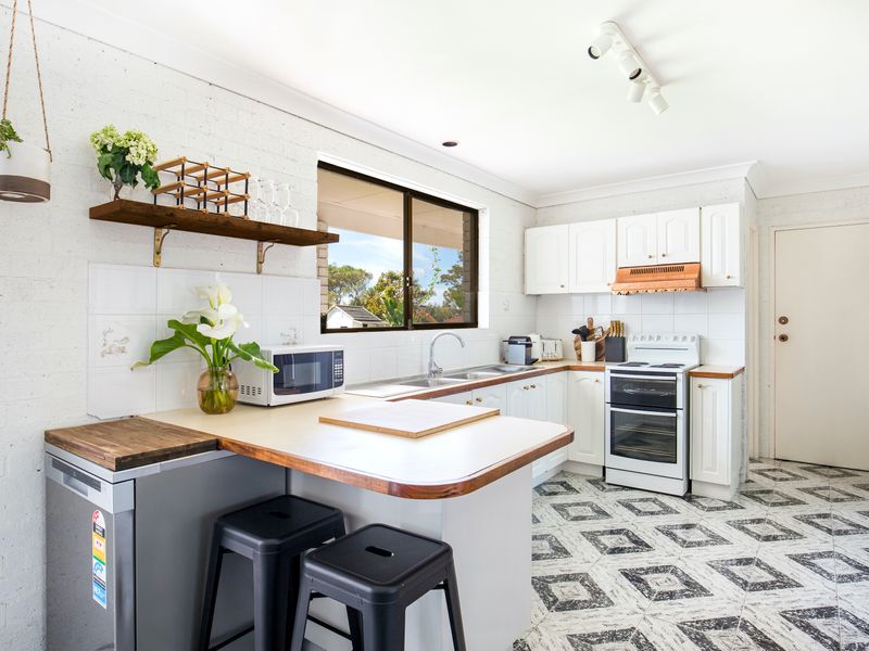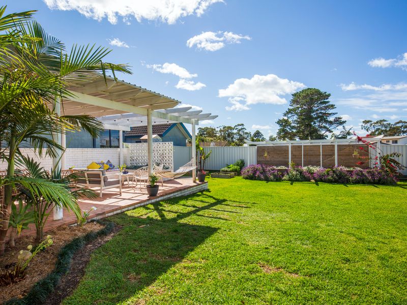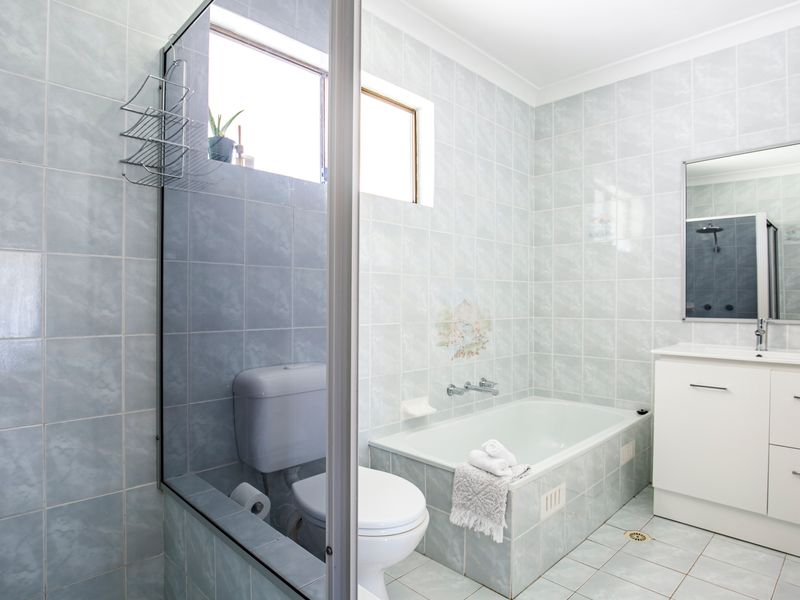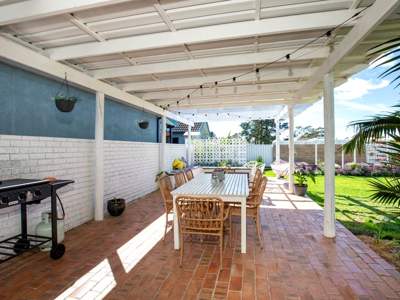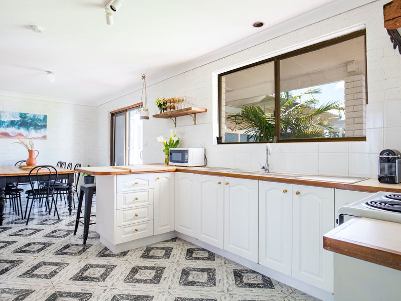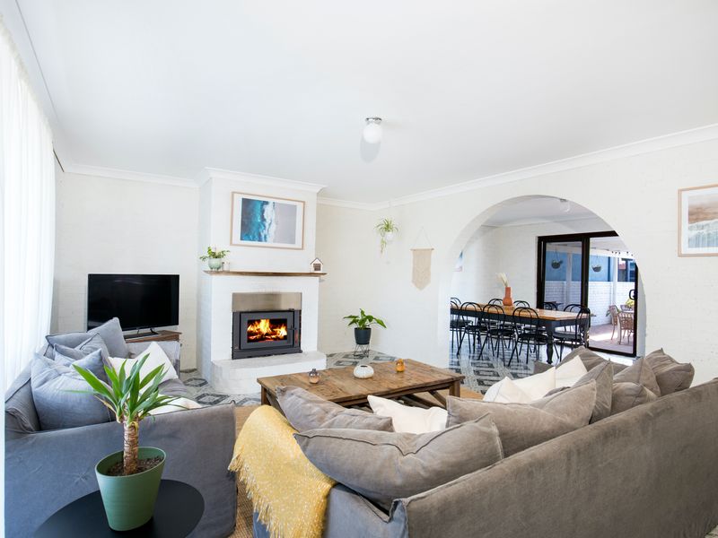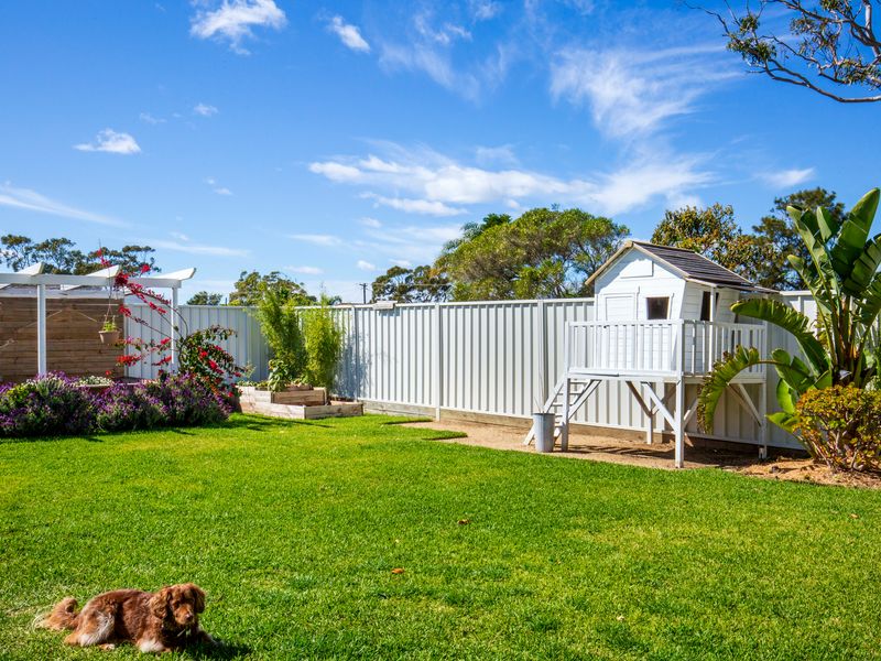 Stay inside comfortably in any kind of weather with the air conditioning and cool original tiling when it’s hot, and the fan-enhanced wood-burning fireplace when it’s cold and relax in front of the TV with Netflix at your fingertips. For a break from technology, gather around a board game to battle it out, relax on the upstairs couch with a book, or head outside to luxuriate in the hammock. When mealtimes come around, cook up a storm on the BBQ to enjoy on the outdoor dining table with your favourite tunes on the Bluetooth speaker, and your four-legged friend running around the fully fenced yard. Fresh herbs and fruit grow in the backyard for the family chef to pick from, and if you don’t feel like cooking, Club Callala is right across the road with amazing burgers, lawn bowls and golf.